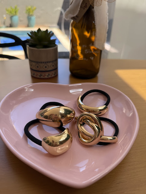 AMARRADOR DE CABELO COM DETALHE EM METAL DOURADO
